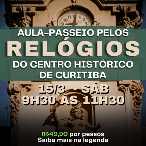 Venha participar de uma aula-passeio para conhecer parte da história do centro histórico de Curitiba tendo como referência os seus relógios públicos.