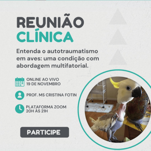 Nessa nossa reunião clínica teremos um encontro gratuito, vamos explorar maneiras de lidar com o autotraumatismo em aves de um jeito prático e eficaz.